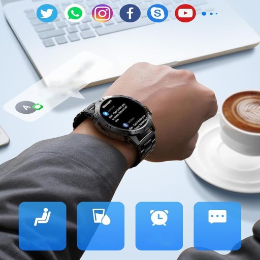 smartwatch z trackerem fitness obsługuje ponad 126 trybów treningowych (chodzenie, bieganie, jazda na rowerze, trening na orbitreku, joga, golf, wioślarz itp.), rejestruje kroki, dystans, kalorie, czas aktywności i tętno. Inteligentny zegarek dla kobiet i mężczyzn monitoruje tętno, natlenienie krwi, ciśnienie krwi i sen przez cały dzień (głęboki sen, płytki sen, pobudkę), aby pomóc Ci utrzymać zdrowszy styl życia i ciało. Inteligentny zegarek monitorujący stan zdrowia zapewnia także przypomnienia o siedzącym trybie życia i przypomnienia o wodzie.