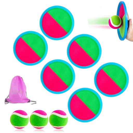 - ✔️【Zabawna gra w rzucanie i łapanie piłek】: Nasz zestaw do łapania piłek zawiera 6 rakiet i 3 piłki oraz 1 torbę do przechowywania. Rakieta wykonana jest z wysokiej jakości nylonowej, lepkiej tkaniny i jest bardzo lepka, dzięki czemu dzieci mogą z łatwością chwycić piłkę, a wyciągnięcie piłki z dysku nie będzie dla niego trudne. Ta gra polegająca na łapaniu piłki wymaga co najmniej 2 graczy. Jest elastyczna i przyjemna, aby umożliwić wspólną zabawę dzieciom i dorosłym.
