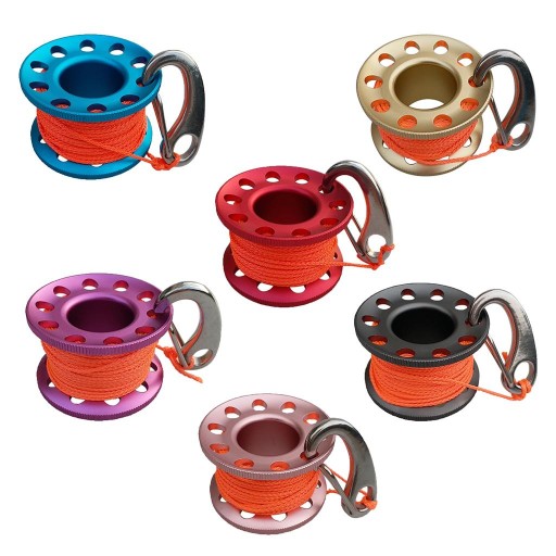 Kompaktowy kołowrotek ze szpulą palcową do nurkowania z 10-metrową linią o wysokiej widoczności.