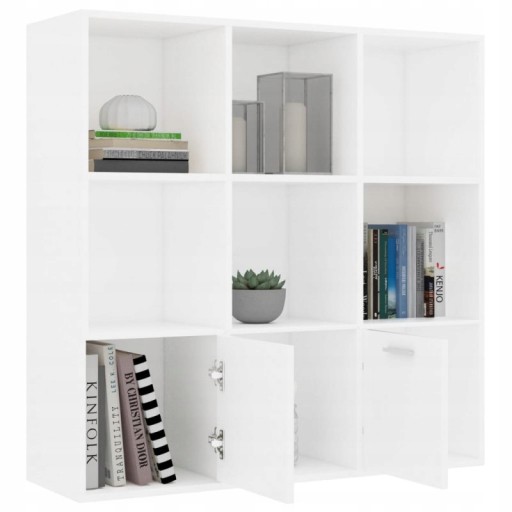 Prosta i klasyczna forma regału sprawia, że stanie się on zarówno ozdobnym, jak i praktycznym dodatkiem do Twojego wystroju wnętrza. Mebel wykonano z dobrej jakości płyty, co zapewnia jego wytrzymałość i trwałość. Zawierający 7 otwartych kubików i 2 drzwi regał oferuje mnóstwo miejsca do poukładania Twoich czasopism, książek, płyt DVD, urządzeń multimedialnych i innych przedmiotów dekoracyjnych w zasięgu ręki. Regał na książki można bardzo łatwo wyczyścić przy pomocy wilgotnej ściereczki. Jest on łatwy w montażu dzięki załączonym akcesoriom.