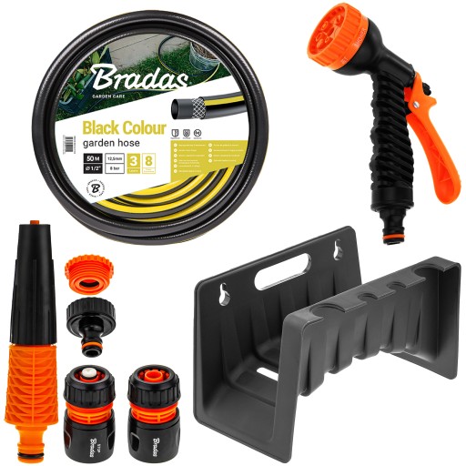 ✨ WYJĄTKOWY ZESTAW: UCHWYT ŚCIENNY + WĄŻ 50m + PISTOLET 7-funkcyjny + ZRASZACZ Z KOŃCÓWKAMI marki Bradas ✨