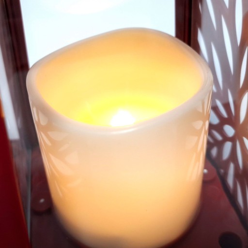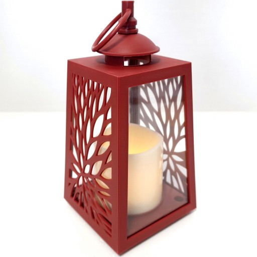 LATARENKA LAMPION AŻUROWA Z ZE ŚWIECĄ LED ŚWIECA CZERWONY NA BATERIE WKŁAD
