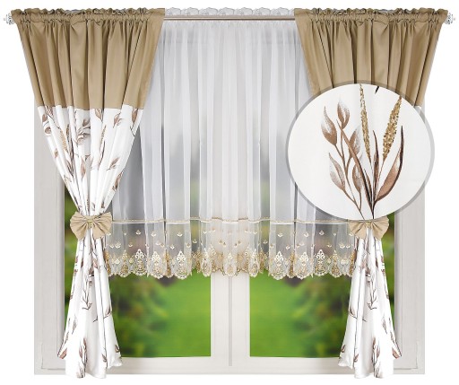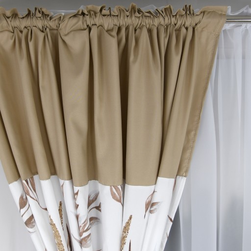КОМПЛЕКТ ШТОР С БЕЖЕВЫМИ ЛИСТЬЯМИ + ГОТОВАЯ ШТОРА БЕЛЫЙ ГОЛОС 400х160 С ЛЕНТОЙ
