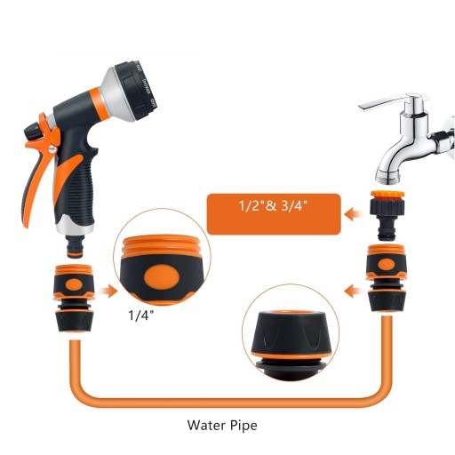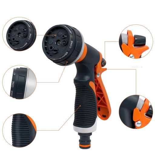 РУЧНОЙ САДОВЫЙ ДОЖДЕВАТЕЛЬ ШЛАНГОВЫЙ ПИСТОЛЕТ, РЕГУЛИРУЕМЫЙ, 8 РЕЖИМОВ