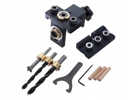 - Szablon 3 w 1 to szablon, który ułatwia wiercenie w drewnie, płycie wiórowej, MDF itp. Idealnie nadaje się do tworzenia połączeń mimośrodowych z użyciem kołków drewnianych, może też być użyty do wiercenia pionowego.