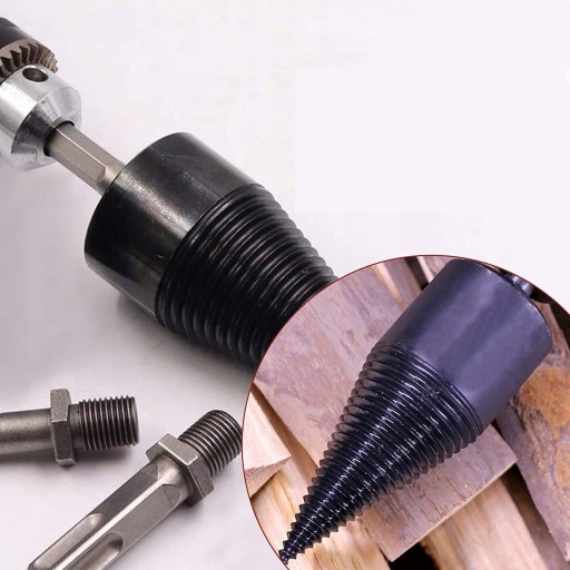 - Wiertło do rozłupywania drewna ma nowy antypoślizgowy gwint w kształcie litery U. Im głębszy gwint wiertła, tym bardziej pracochłonna i wygodna praca. Spiczasta konstrukcja i antypoślizgowe rowki zapobiegają poślizgowi i poprawiają wydajność. Możesz łatwo posypać duże drewno opałowe i drewno w domu.