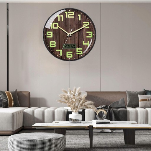 Z wyświetlaczem temperatury: zegar ścienny do ogrodu może wyświetlać temperaturę i wilgotność wewnątrz na zewnątrz.