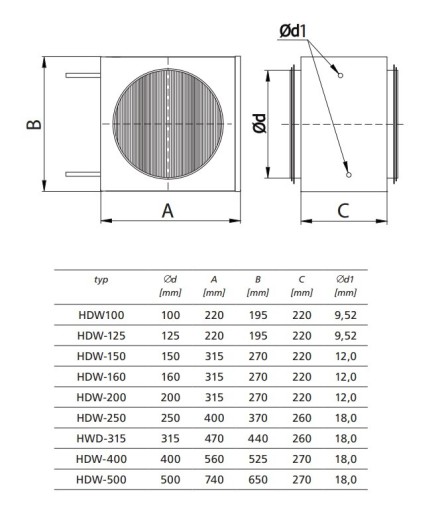 - Dowolny kierunek przepływu powietrza (Wlot / Wylot)