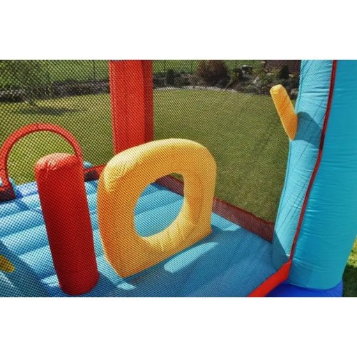 Ten wyjątkowy dmuchaniec dostarczy niezapomnianych wrażeń w letnie dni. Wykonany ze specjalnego materiału jest wytrzymały a jednocześnie miękki. Ten dmuchany zamek wykonany jest z trwałego PVC oraz podwójnie laminowanego, podwójnie obszywanego nylonu, pozostaje nadmuchany dzięki ciągłemu przepływowi powietrza. Ten dmuchaniec wspaniale nadaje się do ustawienia w ogrodzie! Rozstawia się go w kilka chwil, a daje godziny zabawy! Świetnie nadaje się do pomieszczenia jak i na dwór. Dzięki temu, że jest stale pompowany przez elektryczną dmuchawę, nawet gdy pojawi się dziurka, zamek pozostaje napompowany. Mały rozmiar umożliwia łatwe przechowywanie. Świetnie sprawdza się na zabawach z przyjaciółmi, dając mnóstwo radości. Dmuchańce spełniają międzynarodowe standardy bezpieczeństwa.