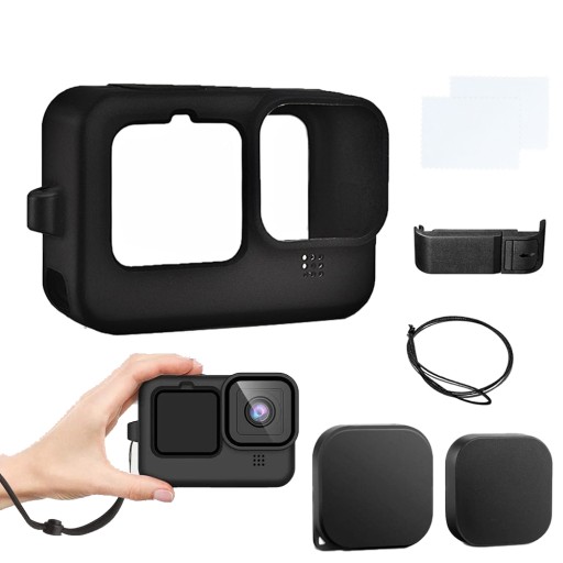 Ta czarna silikonowa obudowa ochronna dla kamery sportowej GoPro Hero 12/11/10/9 zapewnia kompleksową ochronę dla Twojego urządzenia, zapewniając bezpieczeństwo podczas aktywnego użytkowania i przechowywania.