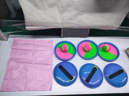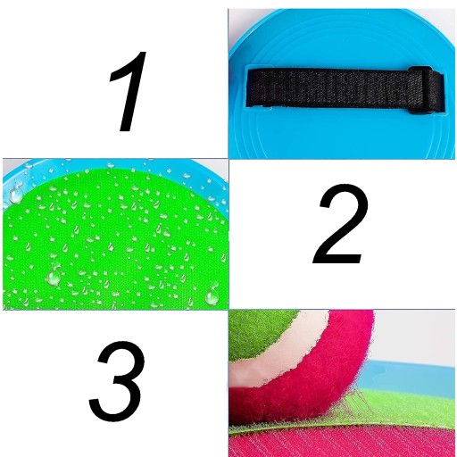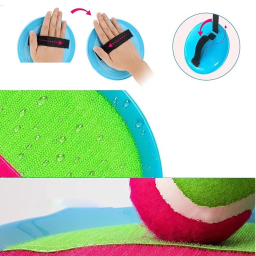 🥎Ponieważ rzepy sklejają się ze sobą, piłkę można łatwo złapać rakietą.
