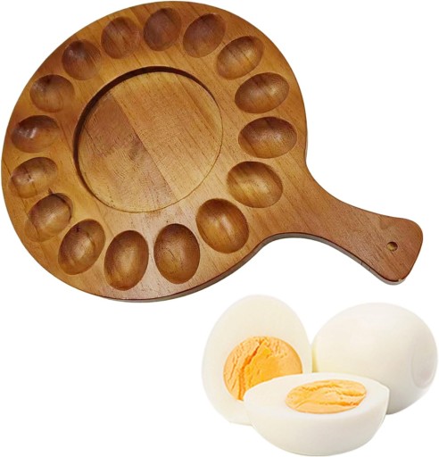 ①Taca na Diabelskie Jajka, Pojemnik na Diabelskie Jajka,Drewniana okrągła taca do serwowania z uchwytem | 16-otworowy pojemnik z tacą do serwowania, dwustronna deska do wędlin Talerz do jajek do ②?Organizacja bez wysiłku: Utrzymuj jajka w porządku dzięki naszemu diabelskiemu talerzowi na jajka z 16 otworami na jajka w kompaktowej i lekkiej konstrukcji. Jest to idealne rozwiązanie, które zaspokoi Twoje potrzeby w zakresie przechowywania, nie zajmując przy tym zbyt dużo miejsca na biurku, w kuchni czy lodówce.③?Wiele zastosowań: Wzboga? swoje doświadczenie hostingowe dzięki naszemu talerzowi z diabelskimi jajkami, który pomieści do 24 jajek diabelskich, na twardo lub wielkanocnych. Po odwróceniu zmienia się w elegancką deskę do wędlin, idealną do serwowania serów, mięs i owoców.④?Trwały i bezpieczny: wykonany z niezawodnego materiału drewnianego wielokrotnego użytku o grubości 0,75 cala, ten diabelski talerz na jajka charakteryzuje się wyjątkową wytrzymałością i przyjaznością dla środowiska. Solidne i wyrafinowane wykonanie zapewnia długotrwałą jakoś?, która zaspokoi Twoje potrzeby związane z rozrywką.⑤?Oferuj wiele korzyści: Nasz diabelski talerz na jajka to idealny dodatek na każde wydarzenie, idealny na Wielkanoc, Boże Narodzenie, ?więto Dziękczynienia i przyjęcia urodzinowe. Sprawdzi się także jako wykwintna ozdoba na środek stołu, dodając wdzięku i wyrafinowania atmosferze jadalni.