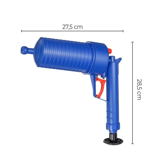 Uchwyt w kształcie pistoletu ma za zadanie ułatwić użytkownikowi zachować pewny chwyt podczas pracy. Pompa ciśnieniowa nie wymaga żadnego źródła zasilania, więc jej użycie przebiega bez przewodów. Za pomocą przepływu powietrza pod wysokim ciśnieniem, pistolet jest w stanie poradzić sobie z wszelkiego rodzaju zatorami. Ręczniki papierowe, chusteczki, zaschnięty tłuszcz, olej czy włosy nie będą stanowić dla niego problemu.
