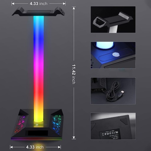 stojak statyw na słuchawki new gamingowy podświetlenie rgb led z porty USB