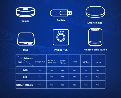- Szeroka kompatybilność - sterownik jest kompatybilny z większością popularnych bramek ZigBee 3.0: Homey, Conbee, SmartThings, TUYA, Philips HUE, Amazon Echo