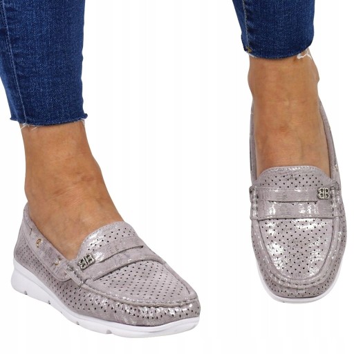 SREBRNE MOKASYNY WYGODNE BUTY DAMSKIE