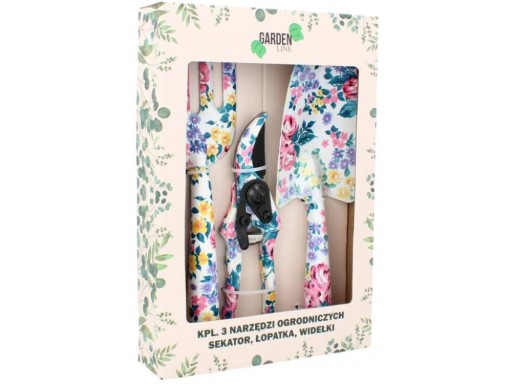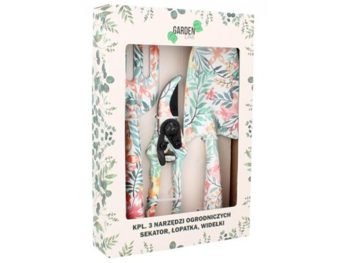 ZESTAW NARZĘDZI OGRODOWYCH ŁOPATKA SEKATOR GRABKI KOLOROWE WZÓR