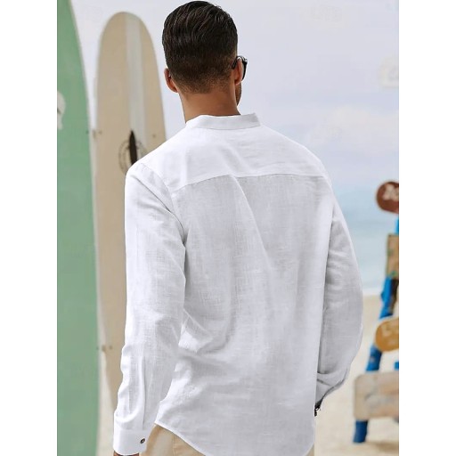 Мужская воздушная хлопковая рубашка с воротником-стойкой на лето