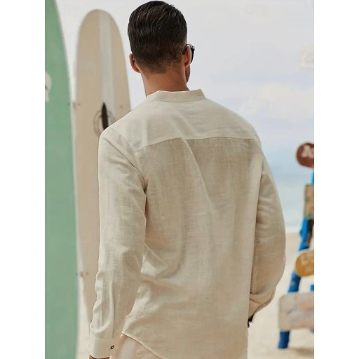 Мужская воздушная рубашка с воротником-стойкой на лето
