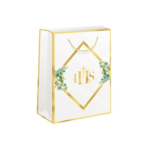 Torebka na prezenty komunijna IHS Eukaliptus mała - 1 sztuka