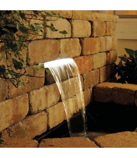Podświetlany wylot z 24 ciepłymi białymi diodami LED sprawi, że każdy wodospad zacznie kojarzyć się efktownie. Zawiera końcówkę węża (19/25 mm) do montażu z tyłu lub od spodu. PondoFall LED jest wykonany z trwałego, odpornego na warunki atmosferyczne i promieniowanie UV tworzywa sztucznego i jest odpowiedni dla natężenia przepływu wody od 2000 l/h do 6000 l/h. Zawiera transformator bezpiecznego napięcia 12 V i kabel o długości 2 +