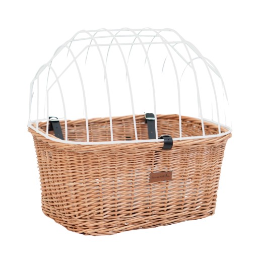 - Zastosowanie: Kosz przeznaczony jest do przewożenia małych zwierząt, np. kota lub niedużego psa (max. 5-6 kg). Na bokach kosza znajdują się otwory, które ułatwiają jego przenoszenie. Kosz może służyć jako transporter dla zwierząt lub bez zamocowania kratki, jako tradycyjny kosz wiklinowy na rower.