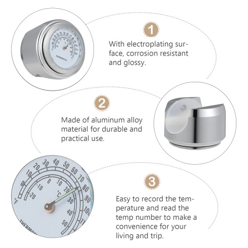 ✅Ten wodoodporny termometr do montażu na kierownicy wykonany jest ze stopu aluminium z powierzchnią galwaniczną, odporny na korozję i błyszczący, niełatwy do odkształcenia i niełatwy do uszkodzenia, zapewniając maksymalną trwałość.