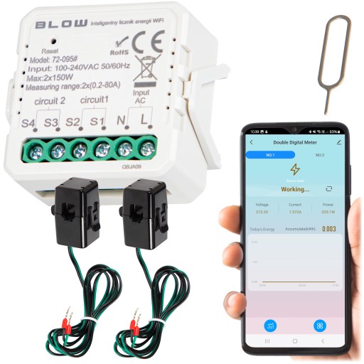 LICZNIK ZUŻYCIA ENERGII WIFI TUYA MIERNIK NAPIĘCIA 2 PRZEKŁADNIKI 80A