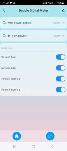 W aplikacji TUYA jesteśmy w stanie ustawić wartości dla pobieranej mocy oraz alerty błędu i mocy