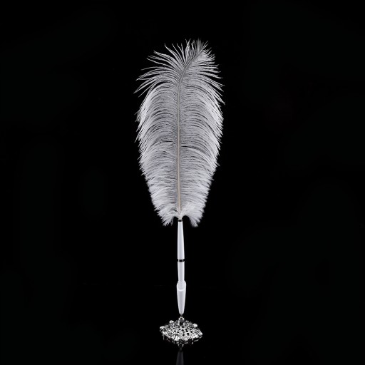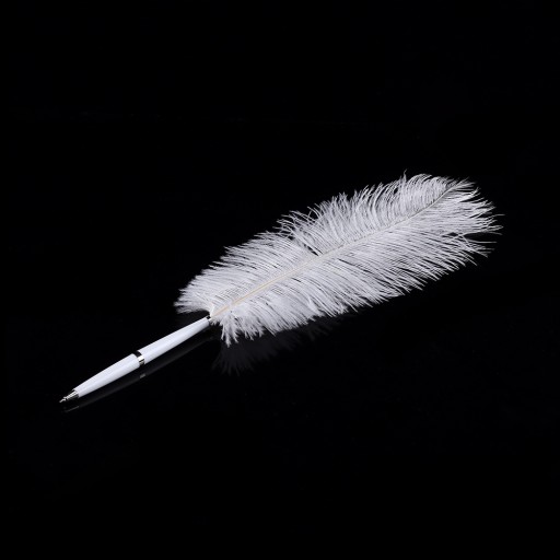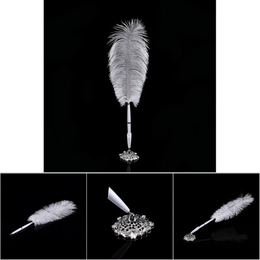Białe piórko, biały długopis i złoty/srebrny uchwyt sprawiają, że wygląda elegancko i delikatnie.