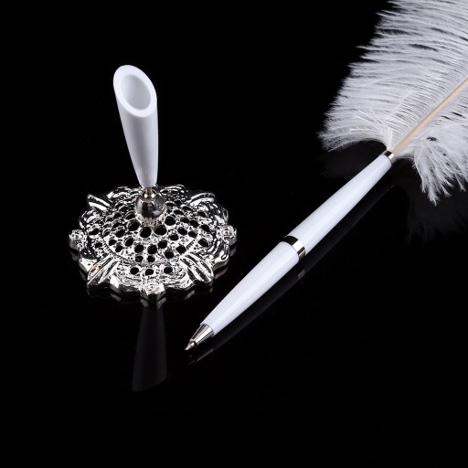 Nasz długopis ze strusim piórkiem to świetna dekoracja na ślub, ceremonię, wesele itp. Białe piórko, biały długopis i złoty/srebrny uchwyt sprawiają, że wygląda naprawdę elegancko i delikatnie. I ma wykwintne opakowanie, możesz wysłać go znajomym lub rodzinie jako prezent. Taki piękny i praktyczny długopis do podpisu, jesteś tego wart!