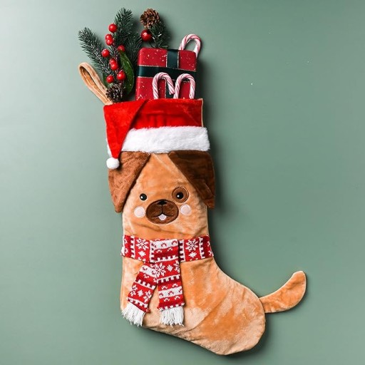 Рождественский чулок для подарков, который можно повесить на камин, собака 54 см