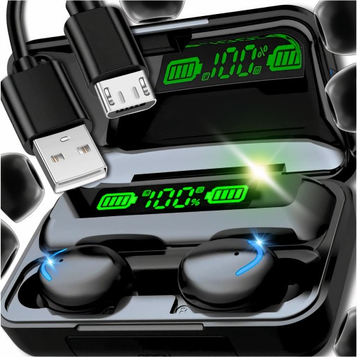 SŁUCHAWKI BEZPRZEWODOWE DOUSZNE BLUETOOTH 5.3 STEROWANE DOTYKIEM +POWERBANK