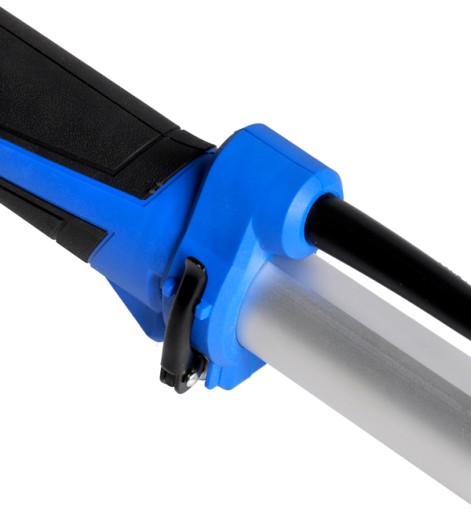 Teleskopowy wysięgnik szlifierki pozwala wykonywać prace bez konieczności korzystania z drabiny lub rusztowania.