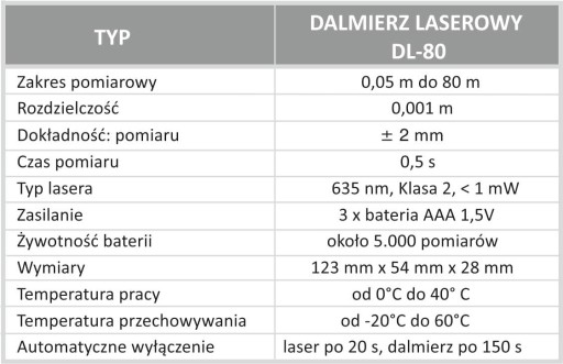 - Zestaw: W zestawie detektor laserowy DWL-02, uchwyt mocujący, bateria 9V oraz instrukcja obsługi.
