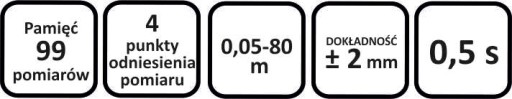 - Dokładność: Ustawienie "dokładne" ±1,5 mm, ustawienie "średnie" ±2,5 mm.