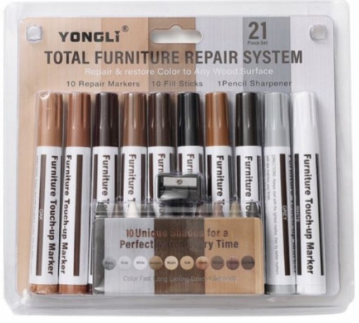 Świetny, uniwersalny zestaw do szybkiej i samodzielnej naprawy mebli, paneli czy innych powierzchni drewnianych.