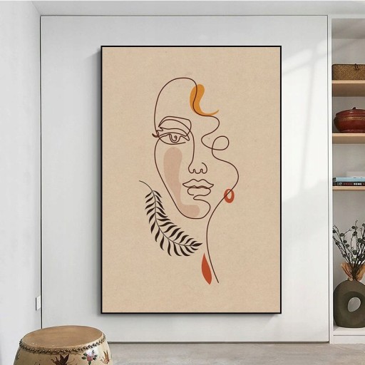 Абстрактное Лицо Искусства Одной Линии Листья Винтаж