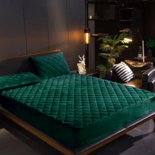 POKROWIEC NA MATERAC OCHRANIACZ PIKOWANY WELUR PLUSZ WODOODPORNY 90 x 200 x 30 CM BUTELKOWA ZIELEŃ