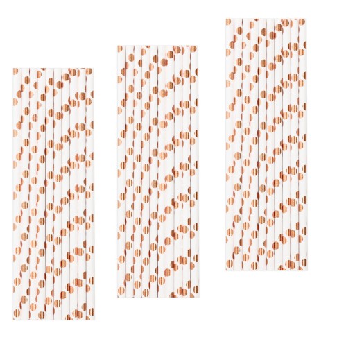 Słomki jednorazowe do picia RURKI papierowe BIAŁE w KROPKI ROSE GOLD