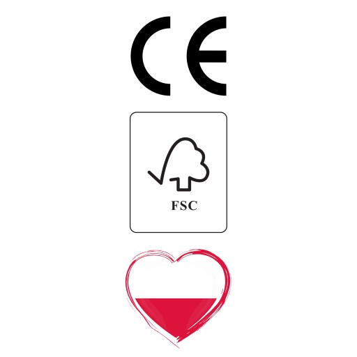 - FSC - wybierając tak oznakowany produkt masz pewność, że surowiec drzewny użyty w w danym wyrobie pochodzi z odpowiedzialnie zarządzanych lasów certyfikowanych w systemie FSC oraz innych odpowiedzialnych źródeł.