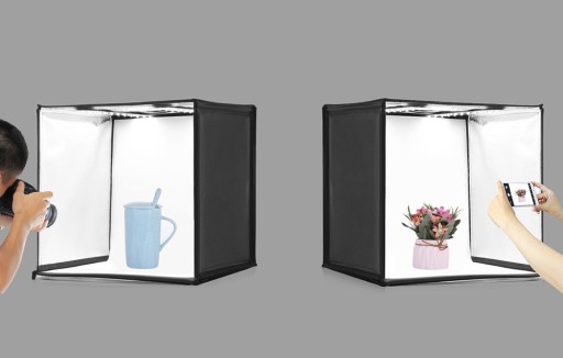 Namiot posiada otwieraną górną pokrywę, dzięki czemu zdjęcia możemy wykonać także z góry. W zestawie znajdziesz też tła fotograficzne w różnych kolorach, dzięki czemu z łatwością dostosujesz kolorystykę do konkretnego produktu.