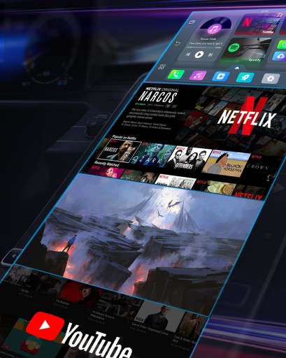 Adapter wyposażony jest w pięć preinstalowanych aplikacji, w tym YouTube, Netflix, IPTV, Spotify i YouTube Music, co zapewnia szeroki zakres rozrywki podczas podróży. Uwaga: dodatkowe aplikacje nie są obsługiwane.