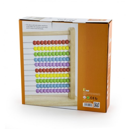 Drewniane liczydło o wymiarach około 30,5 x 31 x 7,5 cm.