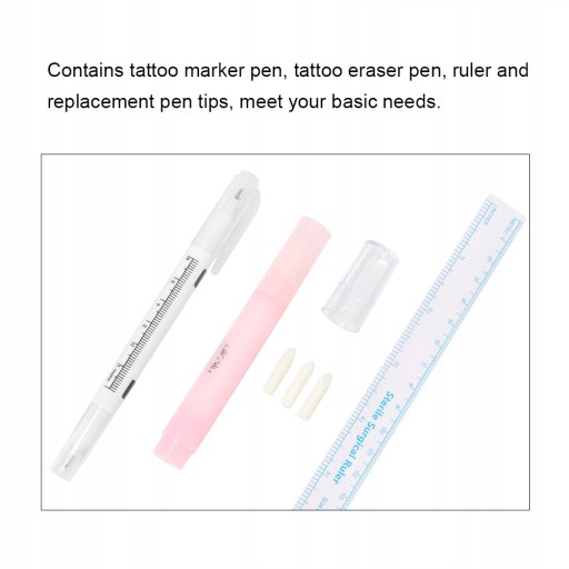 2. Zawiera marker do tatuażu, gumka do tatuażu, linijkę i zapasowe końcówki pióra, spełniające twoje podstawowe potrzeby.