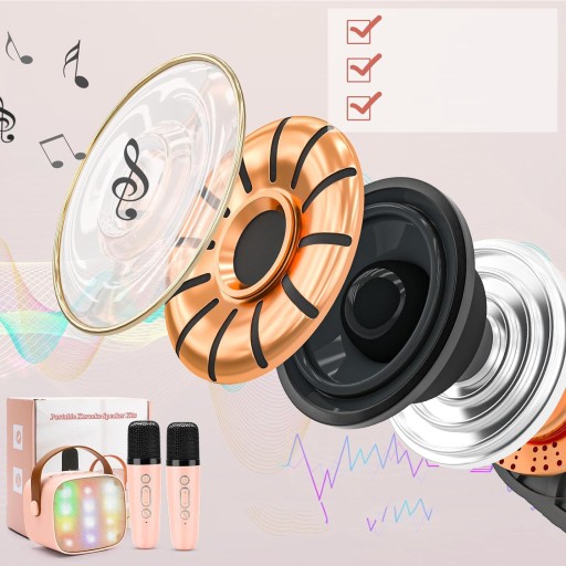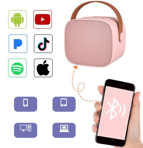 Maszynę do karaoke z mikrofonem można łatwo podłączyć za pomocą Bluetooth, kabla audio i karty TF (brak w zestawie). Może być również używany jako głośnik, odtwarzacz z tańczącymi światłami LED.