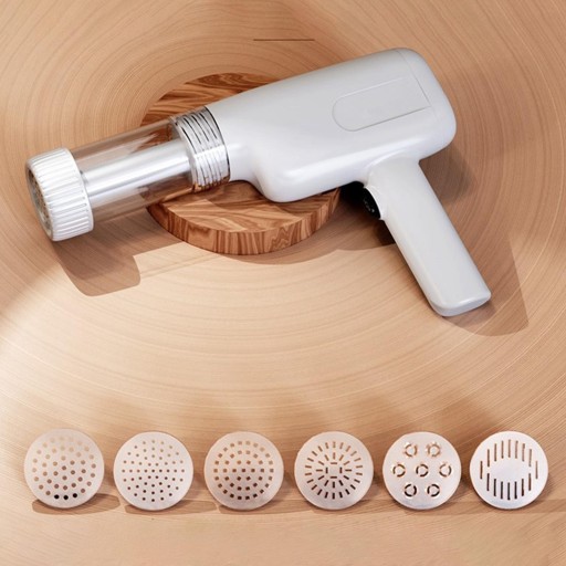 [Pakiet zawiera]: Każdy zakup zawiera 1 maszynę do makaronu, 1 kabel ładujący i 6 głowic do różnych rodzajów makaronu.