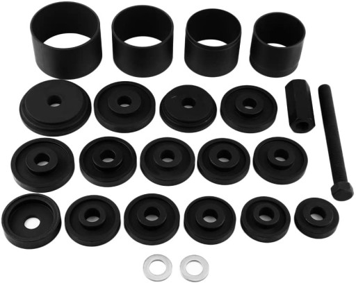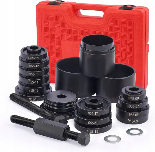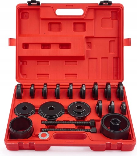 - Zestaw służy do montażu i demontażu łożysk w zwrotnicach oraz tulejek zawieszenia. W zestawie prasa śrubowa i adaptery. Wszystko w eleganckiej i poręcznej walizce.