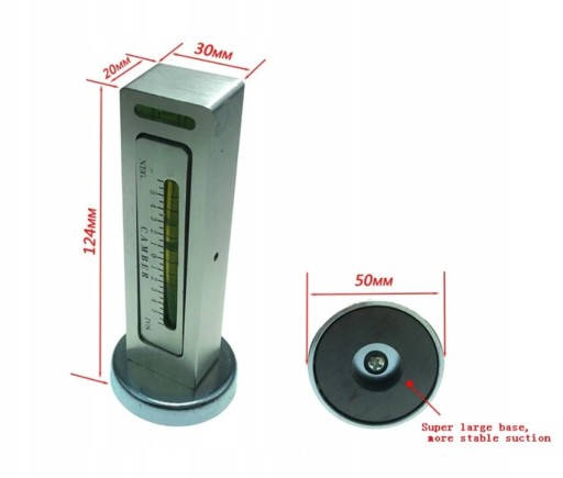 Mierzy kąt pochylenia i mały na piastę koła lub tarcze hamulcowej.