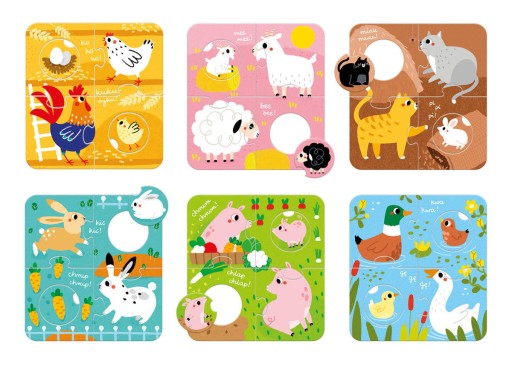 Zobaczcie, jak wiele dzieje się na wsi! W pudełku znajdziecie aż 6 układanek, które mają wszystko, co dzieci uwielbiają: urocze zwierzęta, wymienne elementy i mnóstwo możliwości zabawy.